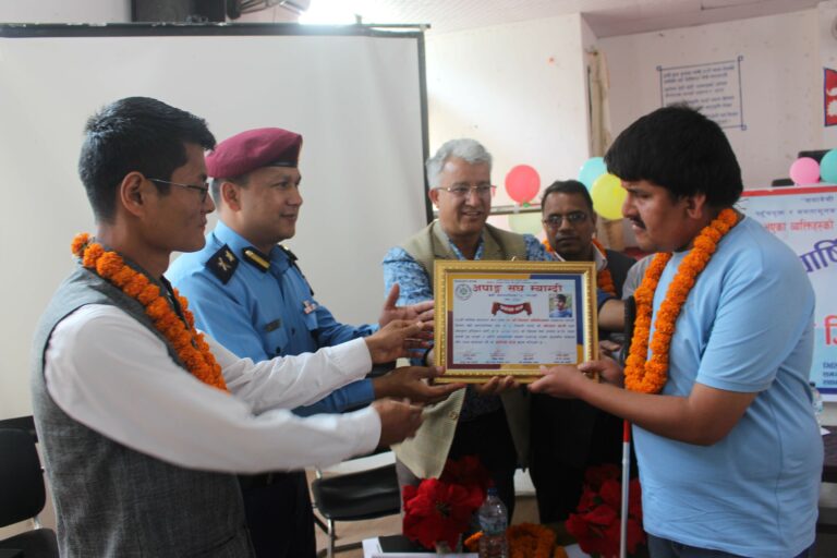त्यस्तै प्रहरी नायव उपरिक्षक मदन कुँवरले जिल्लामा कुल जनसंख्याको ५ प्रतिशत फरक क्षमता भएका ब्यक्तिहरु भएकोले उनीहरुको आधारभूत समस्याहरु प्हिचान गरेर समाधानमा सम्वन्धित निकायलाई सचेत गराउन आग्रह गर्नुभयो । त्यस्तै सामाजिक विकास कार्यालयका प्रमुख रमेश थापाले फरक क्षमता भएको ब्यक्तिहरुलाई समाजमा सम्मानपूर्वक बाच्न पाउने अधिकारलाई सुरक्षित गर्न संघको भूमिका महत्वपूर्ण हुने बताउनुभयो । अपाङ्गता भएका ब्यक्तिहरुलाई सरकारी सूचना, सेवासुविधामा प्राथमिकता दिएको छ वा छैन यस विषयमा निगरानी बढाएर सम्वन्धीत निकायलाई सचेत गराउने भूमिमा संघका नवनिर्वाचित समिति अघि बढ्न सुझाव दिनुभयो ।