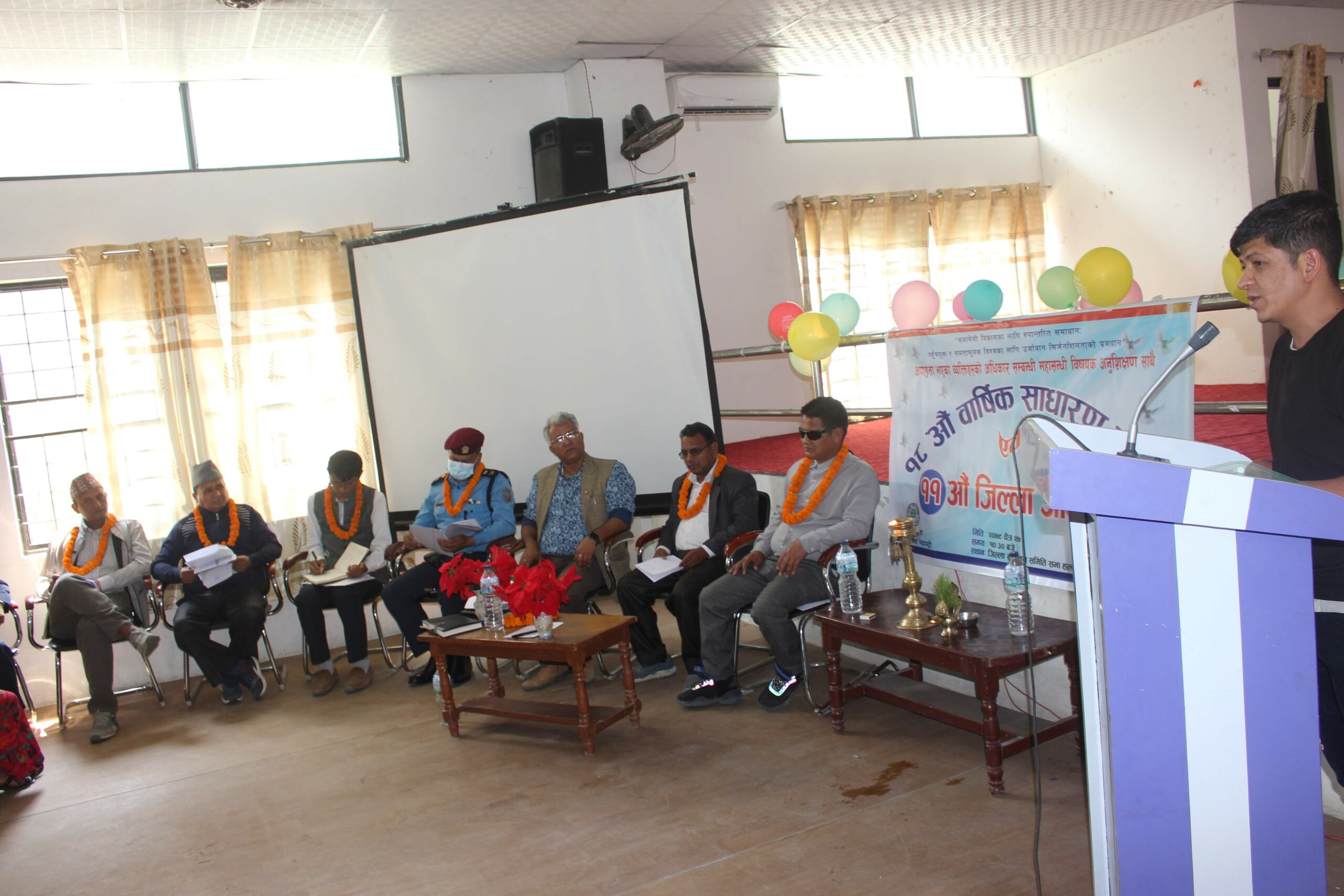 संघका उपाध्यक्ष गणेश सुवेदीको अध्यक्षता, सचिव सुरेन्द्र केसीको संचालन तथा प्रगति प्रतिवदेन प्रस्तुत र कोषाध्यक्ष गोरी दर्जीको स्वागत मन्तव्य रहेको कार्यक्रममा जिल्ला समन्वय समितिको कार्यालयकी शाखा अधिकृत साधनाकुमारी श्रेष्ठ, पत्रकार हरीकृष्ण गौतम, बौद्धिक अपाङ्ग संघ म्याग्दीका निर्वतमान अध्यक्ष यामबहादुर बानियाँ, अपाङ्ग संघ पर्वतका अध्यक्ष जगन्नाथ शर्मा लगायतले मन्तव्य राख्नुभएको थियो । कार्यक्रममा फरक क्षमता ब्यक्तित्वहरुको उपस्थितमा साधारणसभा तथा अधिवेशन सम्पन्न गरिएको थियो ।