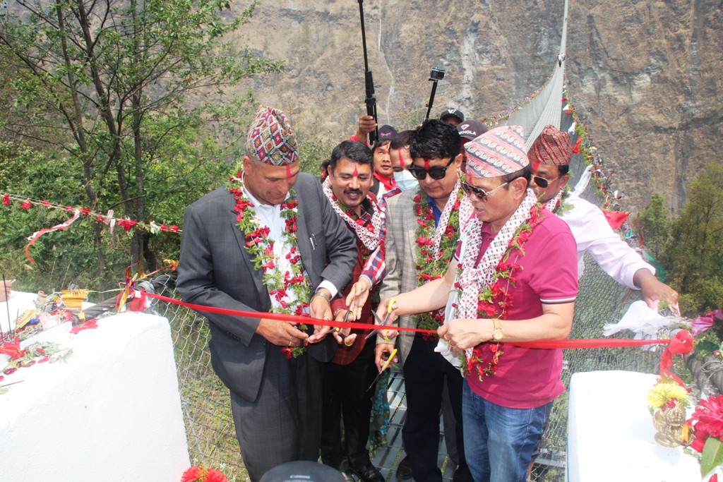म्याग्दी, २ बैशाख । रघुगंगा गाउँपालिका–१ बेग र बाँदुक गाउँलाई जोड्नको लागि निर्माण गरिएको लामो झोलुङ्गे पुलको उद्घाटन गरिएको छ । दुई गाउँलाई जोड्न अग्ला पहाडमा निर्माण गरिएको उक्त ३ सय ६५ दशमलब ८० मिटर लामो झोलुङ्गे पुल निर्माण सम्पन्न भएको पाँच बर्षपछि मात्रै शुक्रवार उद्घाटन गरिएको हो ।