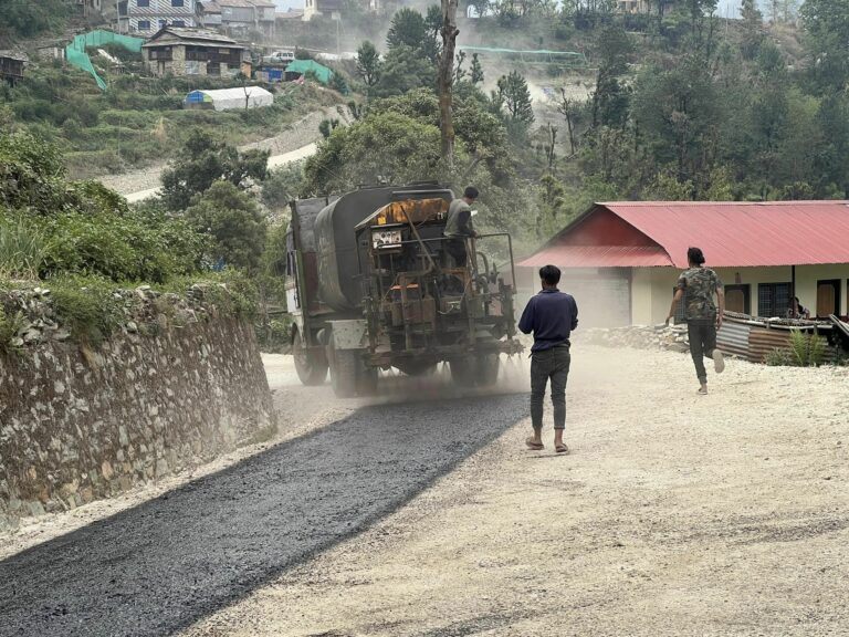 आयोजनाका ईन्जिनियर विवेक पौडेलले सडक विस्तार, नाली, पर्खाल निर्माण लगायत संरचना बनाउने, बेस, सव बेस राख्ने काम सकिएपछि कालोपत्र गर्न थालिएको बताए । खिवाङ–शिख खण्डमा प्राईमकोड विछ्याउने काम भैरहेको छ, अर्को घार खण्डमा र त्यसपछि फलाते–चित्रे खण्डमा प्राईमकोर्ड बिछ्याउने योजना रहेको इञ्जिनियर पौडेलले भने । ‘प्राईमकोर्ड राखेपछि दुई चरणामा डिविएसडी प्रविधिको कालोपत्र हुन्छ।’