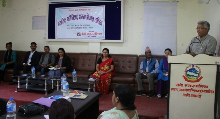 वडा स्तरमा मेलमिलाप केन्द्र सञ्चालन गर्न आवश्यक जनशक्ति तयार पार्ने र सूचिकृत मेलमिलापकर्ताहरुको क्षमता विकास गर्ने उद्देश्यले कार्यक्रम आयोजना गरिएको बेनी नगरपालिकाका उपप्रमुख ज्योती लामिछानेले जानकारी दिए ।