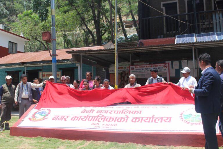म्याग्दी, २५ जेठ । बेनी नगरपालिकाले पहिचान झल्कने आफ्नै ‘लोगो’ बनाएको छ । दशौ स्थापना दिवसको अवसर पारेर बिहीबार कार्यालय परिसरमा जनप्रतिनिधि र कर्मचारीको उपस्थितमा नगर प्रमुख सुरत केसीले लोगो सार्वजनिक गर्नुभएको हो ।