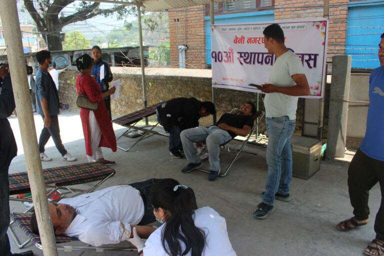 यसैगरी सार्वजनिक भएका एचआइभी सङ्क्रमित दश जनालाई एआरभी औषधी लिन स्वास्थ्य संस्था जान आउने लाग्ने खर्च वापत दश हजार रुपैँयाका दरले सहयोग गरिएको नगर उपप्रमुख ज्योती लामिछानेले बताउनुभयो । स्थापना दिवसका अवसरमा नेपाल रेडक्रस सोसाइटीले सञ्चालन गरेको रक्तसञ्चार गृहको प्राबिधिक सहयोगमा गरिएको रक्तदान कार्यक्रममा १५ जनप्रतिनिधि, कर्मचारीहरुले रक्तदान गरेका छन् ।