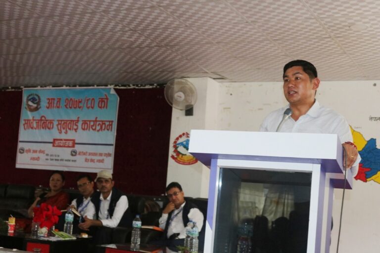 प्रमुख सिग्देलको अध्यक्षता, निमित्त प्रमुख सुवेदीको स्वागत, कृषि ज्ञान केन्द्रका सहायकस्तर पाँचौं भोलानाथ आचार्यले सञ्चालन गर्नुभएको सार्वजनिक सुनुवाई कार्यक्रमको सहजीकरण पत्रकार सन्तोष गौतम, साधन राम्जाली र प्रताप बानियाँले गर्नुभएको थियो ।