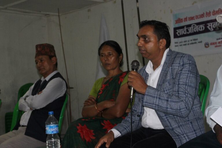 गाउँपालिका अध्यक्ष रोकाको अध्यक्षता, प्रमुख प्रशासकिय अधिकृत पौडेललको स्वागत मन्तव्य रहेको कार्यक्रमको संचालन सूचना अधिकारी राजेन्द्र आचार्यले गर्नुभएको थियो । वडाअध्यक्ष,कर्मचारी, राजनीकि दलका प्रतिनिधि र मंगलाबासीको उपस्थितमा भएको सार्वजनिक सुनुवाई कार्यक्रमको सहजीकरण पत्रकार अमित विश्वकर्माले गर्नुभएको थियो ।
