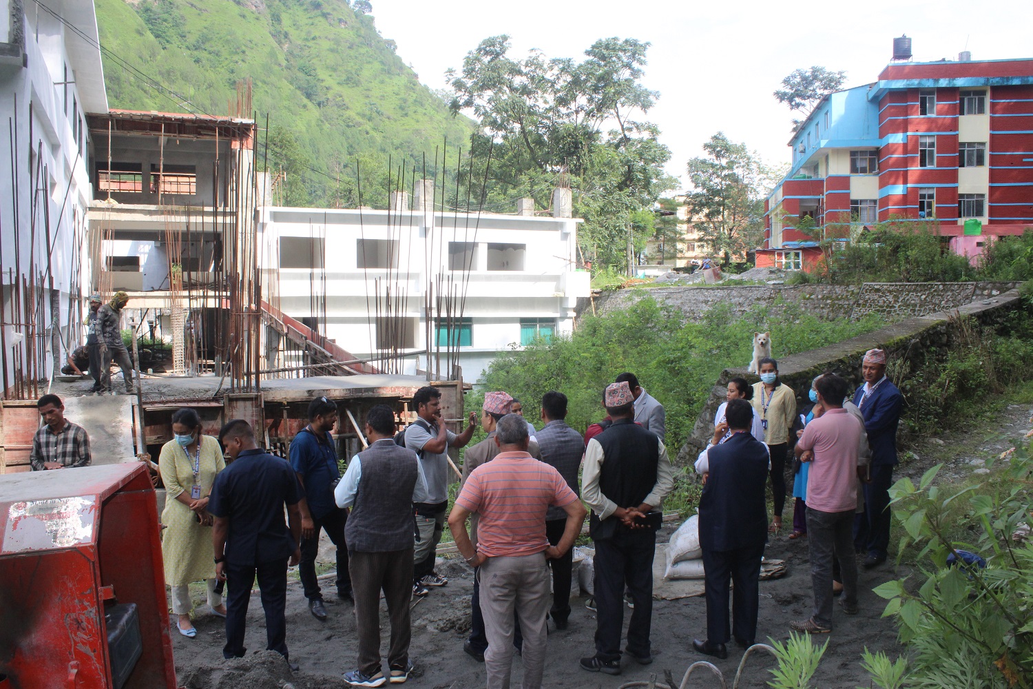 गण्डकी प्रदेशका भौतिक पूर्वाधार विकास तथा यातायात व्यवस्था मन्त्री रेशमबहादुर जुग्जाली, प्रदेशसभा सदस्य माननीय हरिबहादुर भण्डारी, बेनी नगरपालिकाका प्रमुख सुरत केसी, उपप्रमुख ज्योती लामिछाने, सामाजिक विकास तथा स्वास्थ्य मन्त्रालयका सचिव डा.बिनोदबिन्दु शर्मा लगायतको टोलीले बिहिबार भवन निर्माण कार्यको निरिक्षण गर्नुभएको थियो ।