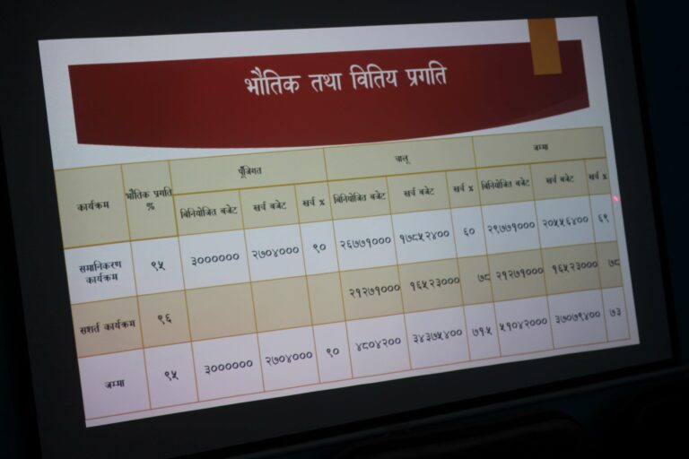 चालू आर्थिक बर्षमा रहेको पाँच करोड १० लाख रुपैयाँ बजेटमध्ये रु तीन करोड ७० लाख रुपैयाँ ७९ हजार ४०० रुपैयाँ खर्च (७३ प्रतिशत) भएको छ ।