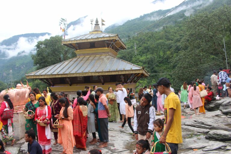 म्याग्दी, १ साउन । साउन महिनाको पहिलो सोमबार गलेश्वरधाम शिवालय मन्दिरमा दर्शन गर्ने भक्तजनको भिड छ । बेनी नगरपालिका– ९ मा अवस्थित प्रसिद्ध गलेश्वर शिवालय मन्दिरमा म्याग्दी, बागलुङ, पर्वत लगायत क्षेत्रबाट दर्शन, पुजाआजा गर्ने भक्तजनहरु आएका छन् ।
