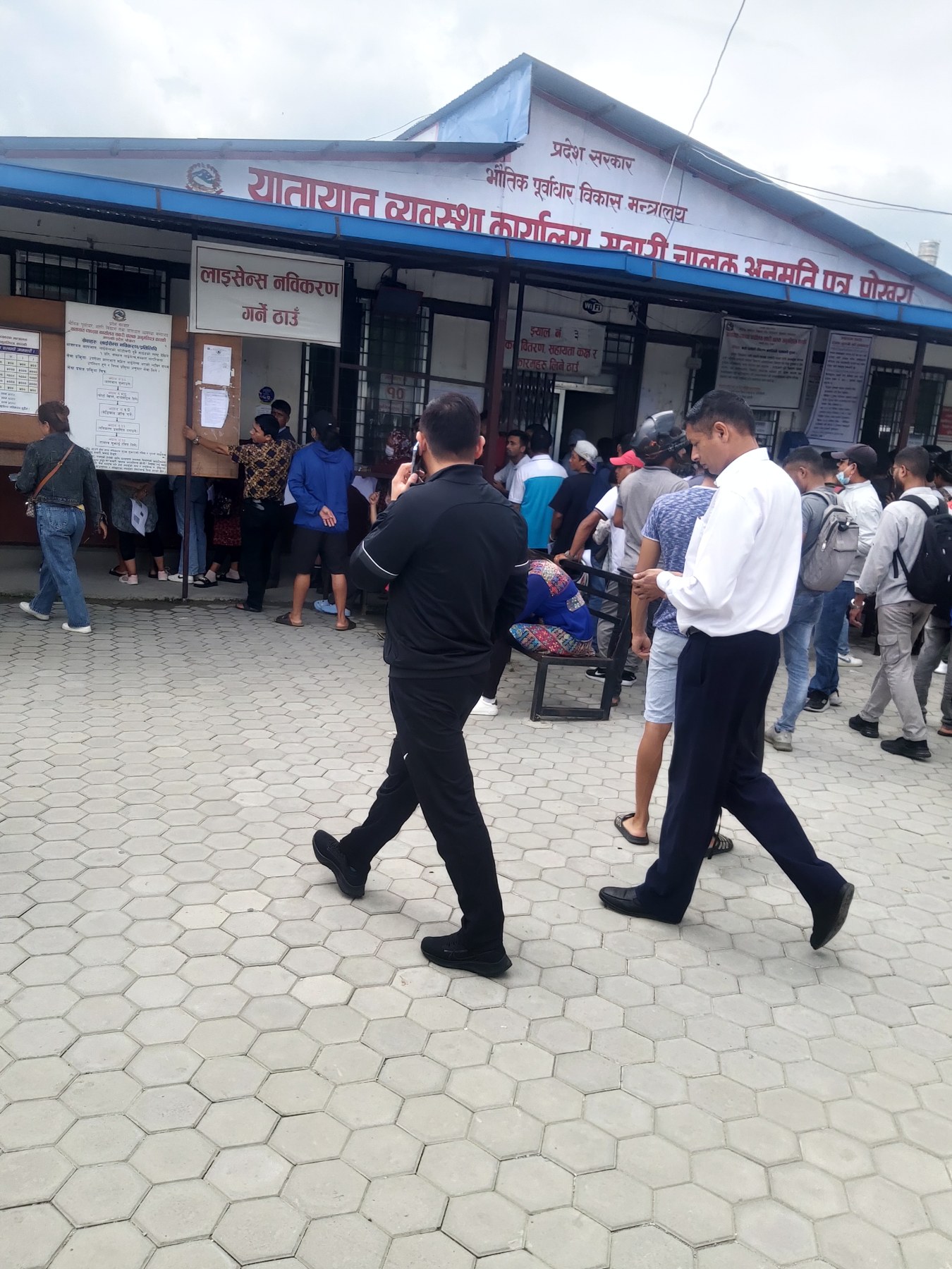 यातायात व्यवस्था कार्यालय कास्कीको सवारी चालक अनुमतिपत्र र सवारी साधन दर्ता तथा नविकरण सम्बन्धी सेवा दिने कार्यालयमा मन्त्री जुग्जाली गोप्य रुपमा सेवाग्राही बनी अनुगमन गर्नुभएको हो ।