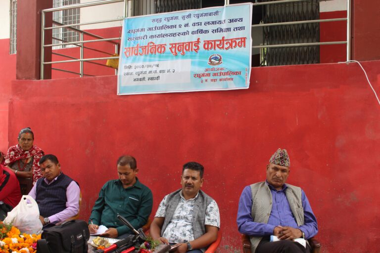 रघुगंगगा गाउँपालिकाको वडानम्वर २ को बार्षिक समिक्षा एवम् सार्वजनिक सुनुवाई कार्यक्रममा सम्बोधन गर्दै उहाँले विकास गर्ने थलो स्थानीय तह नै रहेकोले तीनै तहका सरकार बीच जनताका माग अनुसारका विकास निर्माणमा समन्वय र सहकार्य हुनुपर्नेमा जोड दिनुभयो ।