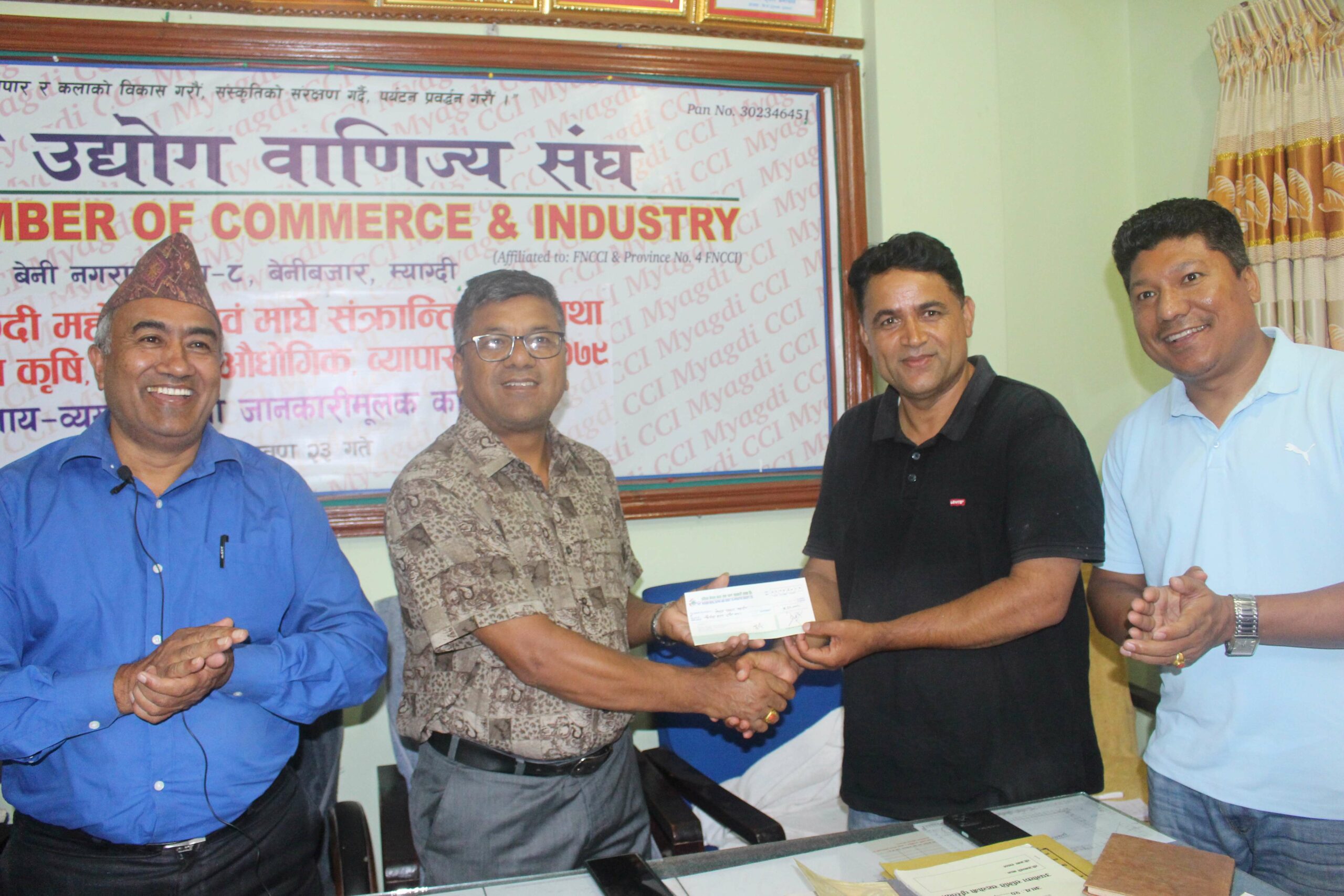 आयब्यय सार्वजनिक कार्यक्रममा संघका पुर्व अध्यक्ष कुविर कुमार श्रेष्ठले नेपाल पत्रकार महासंघ म्याग्दीका अध्यक्ष प्रकाश पौडेललाई ३५ हजार रुपैयाँ हस्तान्तरण गर्नुभएको थियो ।