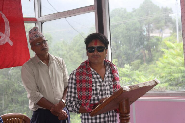 नवप्रवेशीलाई नेकपा माओवादी केन्द्रका केन्द्रिय सदस्य हरी अधिकारी, केन्द्रिय सदस्य गोविन्द्र पौडेल, तिन महिने अभियान अन्तरगत म्याग्दीको इन्चार्ज भएर आउनुभएका गुप्तबहादुर हमाल लगायतका नेताहरुले अबिर र खादा लगाई पार्टीमा स्वागत गर्नुभएको थियो ।