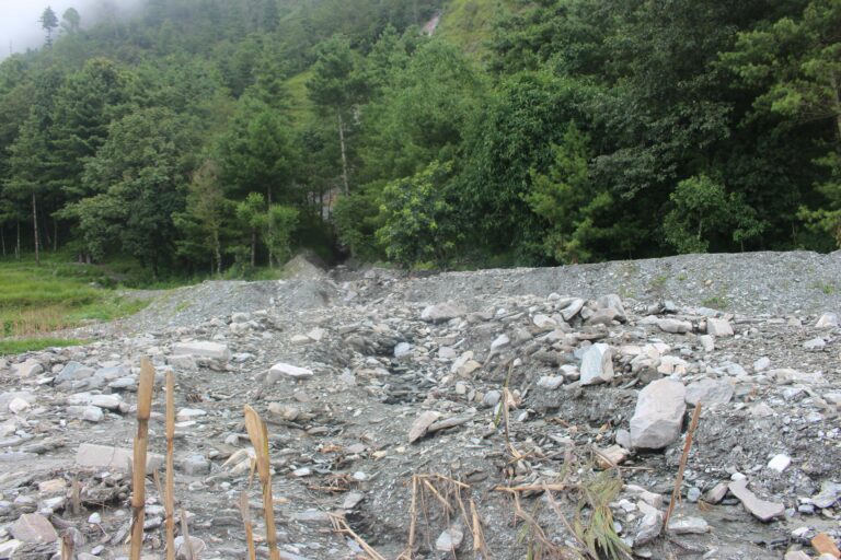 म्याग्दी, १२ भदौ । पर्वतको जलजला गाउँपालिका वडानम्वर २ पूर्णगाउँ मुलघडेरीको खेतीयोग्य जमिन बगर बनेको छ । वडानम्वर ५ स्थित कुवापानीको पहाडबाट खसेको पहिरोले खेतीयोग्य जमिन बगर बनाएको हो ।