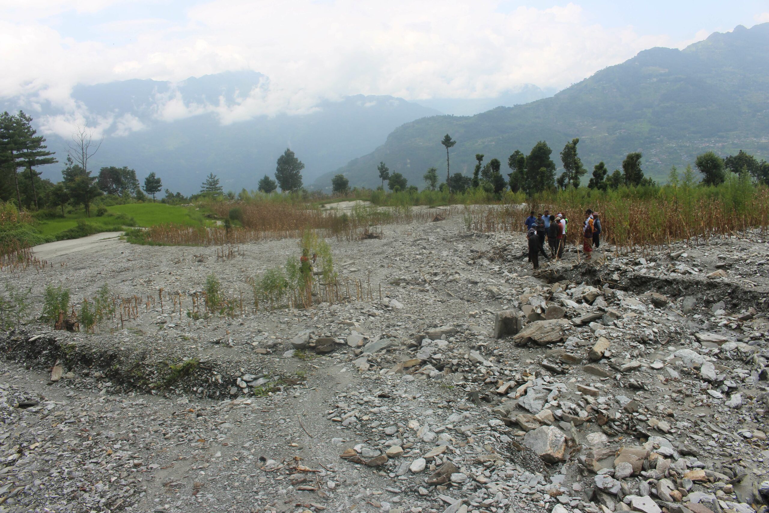 म्याग्दी, १२ भदौ । पर्वतको जलजला गाउँपालिका वडानम्वर २ पूर्णगाउँ मुलघडेरीको खेतीयोग्य जमिन बगर बनेको छ । वडानम्वर ५ स्थित कुवापानीको पहाडबाट खसेको पहिरोले खेतीयोग्य जमिन बगर बनाएको हो ।