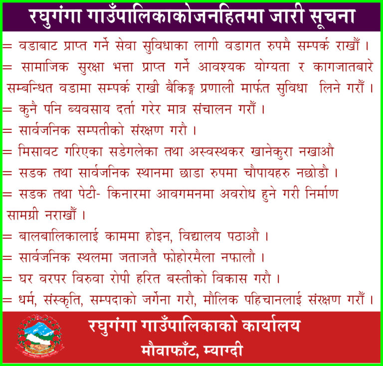 त्यसैगरि पशुहरुमा कृतिम गर्भाधान सेवाको लागि बजेट विनियोजन भएपनि अहिलेसम्म सेवा सूचारु नभएको, सामुदायिक स्वास्थ्य इकाईमा फर्निचरको अभाब भएको, आमा समूहको भवनमा भाँडाकुडा र लत्ताकपडाको अभाब रहेको सहभागीहरुको गुनासो थियो । कार्यक्रममा बोल्दै वडा अध्यक्ष थकबहादुर पाईजाले गाउँपालिकाबाट बजेट विनियोजन हुँदा वडाहरुलाई विगतको तुलनामा कम सिलिङ दिएको कारण बिकास बजेटमा उपेक्षा भएको बताउनुभयो । उहाँले रघुगंगाले शिक्षा र स्वास्थ्य क्षेत्रलाई प्राथमिकता दिएर बजेट तर्जुमा गरेको र पालिकाको आन्तरिक आम्पादीको स्रोतहरु समेत कम भएकाले विकासतर्फको बजेटको आकार बढ्न नसकेको बताउनुभयो ।