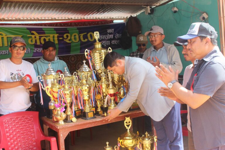 म्याग्दीको रघुगंगा गाउँपालिका–३ पिप्लेमा नवसन्तोष युवा क्लवले आयोजना गरेको खेलकुद प्रतियोगिताको बुधबार उद्घाटन गर्दैै मन्त्री जुग्जालीले म्याग्दीका सडकहरुलाई सहज र सुरक्षित बनाउने योजनामा प्रदेश सरकारले प्राथमिकता दिएर बजेट व्यवस्थापन गरेको जानकारी दिनुभयो ।
