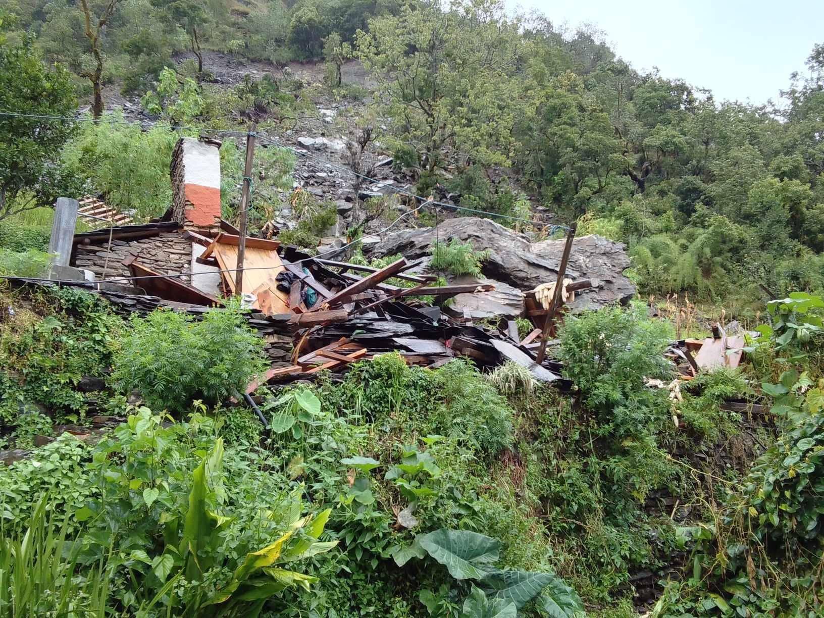 दुईदिनदेखि लगातार बर्षा संगै मंगलबार बेलुकी ९ बजेतिरको समयमा घरमाथिबाट खसेको पहिरोले स्थानीय शेर बहादुर दर्जिको घरगोठ पूर्णरुपमा क्षति पुर्याएको हो ।
