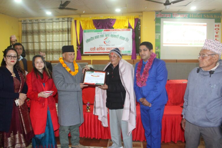 अध्यक्ष हरीकृष्ण गौतमको अध्यक्षता, राष्ट्रिय सहकारी बैंकका संचालक सदस्य रामबहादु जिसीको प्रमुख आतिथ्यतामा १० औँ साधारणसभाको उद्घाटन गरिएको थियो । सो अवसरमा संस्थाका सेयर सदस्य जेष्ठ नागरिकहरुलाई सम्मान गरिएको थियो । त्यस्तै संस्थाका प्रवन्धक नेत्रराज सुवेदीलाई नगदसहित दोसल्ला र प्रमाणपत्रले पनि सम्मान गरिएको थियो ।