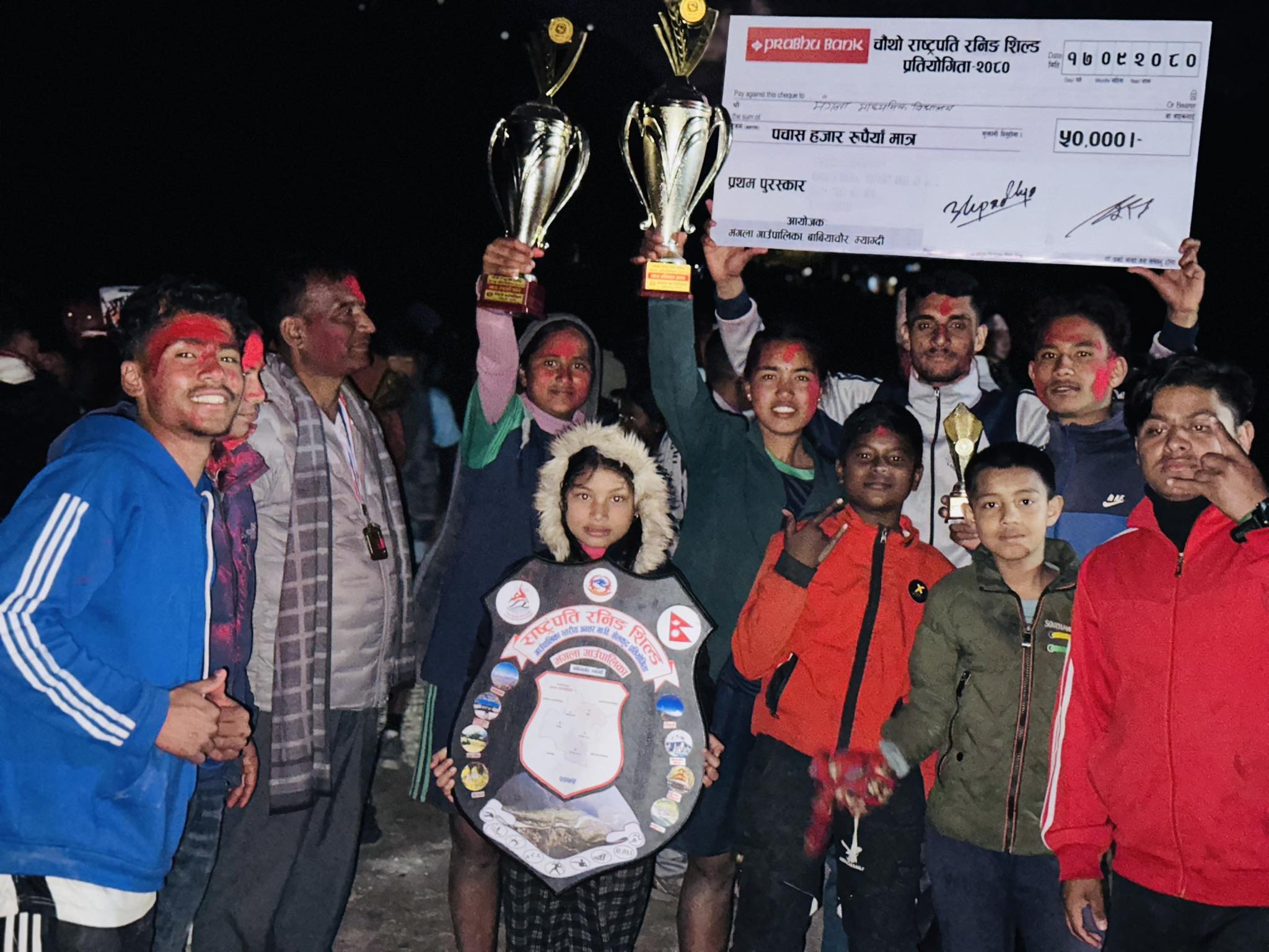 म्याग्दी, १७ पुस । मंगला गाउँपालिकाको आयोजनामा चौथो विद्यालय स्तरीय राष्ट्रपति रनिङ शिल्ड खेलकुद प्रतियोगिता मंगला मावि बावियाचौरले जितेको छ । लगातार ३ पटक विजेता बन्दै मंगला माविले शिल्ड पच गरेको छ ।