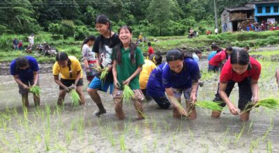 रोपाइँ सिक्न खेतमा पसे विद्यार्थी
