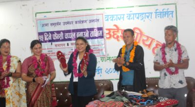 “आमासमूहसंग उपमेयर कार्यक्रम” अन्तरगत गलेश्वरमा फेन्सी चप्पल बनाउने तालिम सम्पन्न