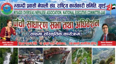 म्याग्दी प्रवासी नेपाली संघ,(मोना) यूएईको अधिवेशन आगामी जुलाई १३ मा हुने