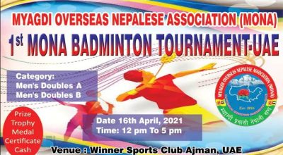 युएईमा प्रथम मोना खुल्ला ब्याडमिन्टन प्रतियोगिता हुने