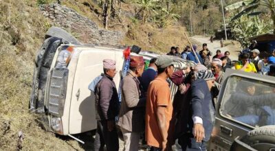 मंगलाको काफलचौरमा जीप दुर्घटना, एक यात्रुको मृत्यु, सात जना घाईते