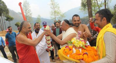रत्नेचौरको लक्ष्मीहरि मन्दिरमा अनन्तश्री विभूषि त्रिदण्डी श्रीमन्नारायण स्वामिजीलाई भव्य स्वागत