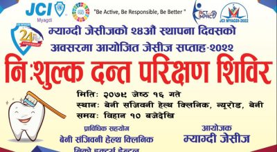 सोमबार बेनीमा निःशुल्क दन्त शिविर हुने