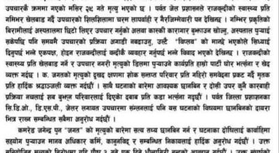 विप्लप नेकपाद्वारा पुष ३ गते धौलागिरीको चार जिल्ला बन्द गर्ने