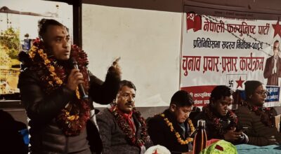 म्याग्दी, ९ फागुन । प्रतिवद्धता पुरा गरेको भन्दै पुर्व सांसद बिनोद केसीलाई अन्नपूर्ण गाउँपालिका–१ दोवाबासीले सम्मान गरेका छन् । नेपाली कम्युनिष्ट पार्टीका प्रतिनिधीसभा सदस्यका उमेद्वार अर्जुन थापाको लागि भोट माग्न दोवा पुगेका केसीलाई वडा अध्यक्ष दिलिप गर्बुजाले स्वागत र स्थानीय...